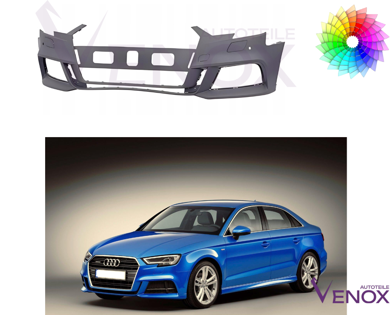 Paraurti anteriore per Audi A3 8V 16-20 SR 2xPDC verniciato nel colore desiderato