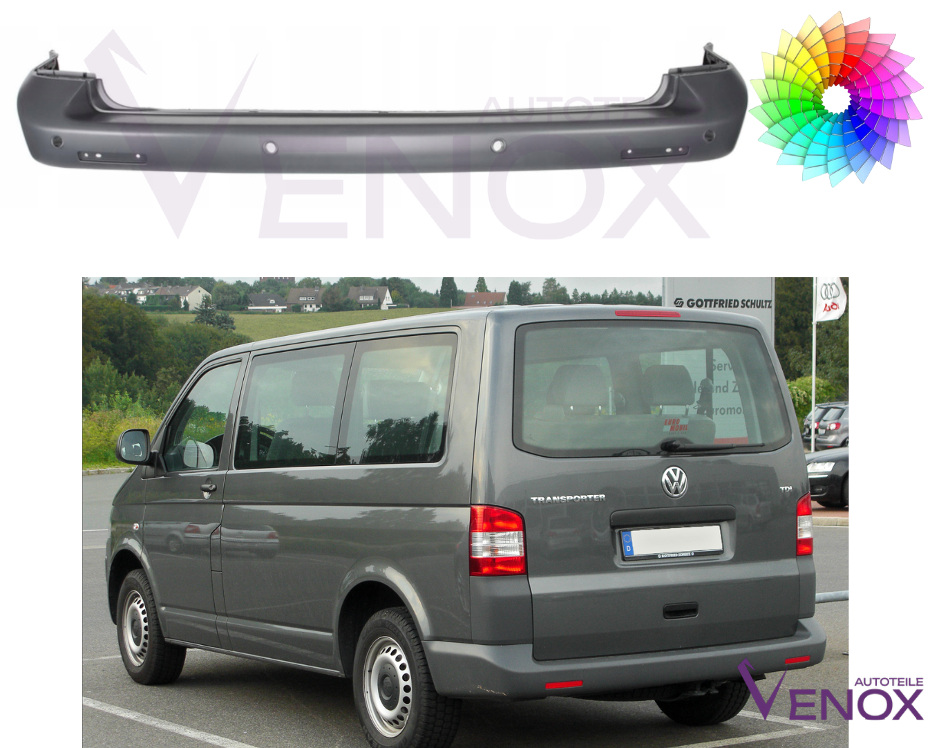 Paraurti posteriore VW T5 CARAVELLE MULTIVAN 2003-2009 PDC verniciato nel colore desiderato